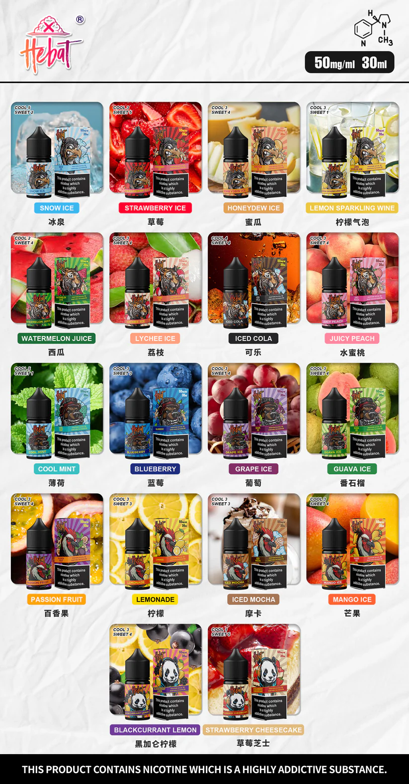 Hebat喜贝烟油30ml/50mg,提供丰富口味和高浓度尼古丁,适合重度吸烟者。高VG比例带来多种口味和丰富烟草,深受电子烟爱好者推崇。选购,最大限度享受立即体验!